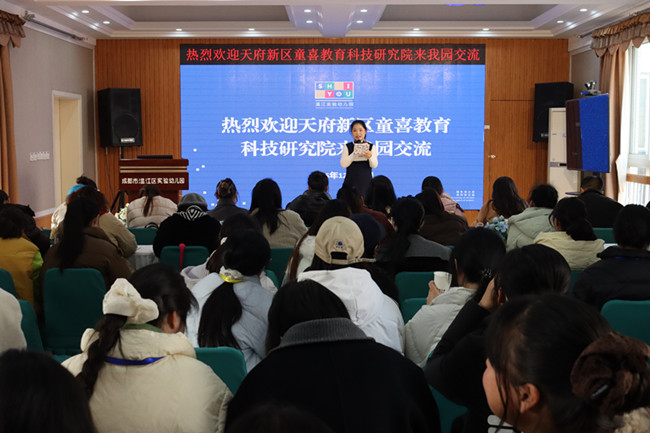 2025年12月10日下午,成都市温江区实验幼儿园迎来四川省天府新区童喜教育科技研究院组织的成都市金沙幼儿园70余名园长及教师,开展交流学习活动。本次活动以“互学互鉴”为主题,双方聚焦幼儿深度学习与科学教育实践,共探创新发展新路径。