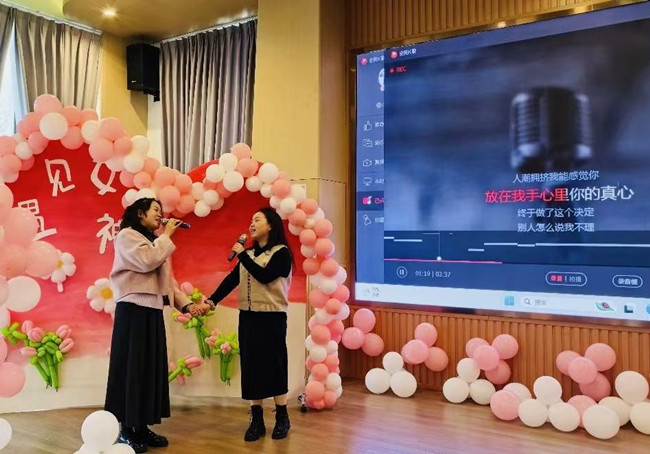 3月6日下午,活动的热度从政通园延续至祥和园。在祥和园分会场,正如活动主题“实幼好声音”所寓意的那样,一场真正属于教职工自己的“微型演唱会”温情开幕。《勇气》、《暖暖》、《我只在乎你》……一首首熟悉的旋律响起,现场仿佛变成了“全民K歌”的大派对。歌声里藏着对生活的热爱,旋律中饱含对幼教事业的热忱,更传递着三园姊妹园之间的深厚情谊。现场掌声阵阵、笑语盈盈,老师们在歌声中展现自我、释放活力,团队的凝聚力与幸福感在悠扬的旋律中不断升温。这一刻,大家放下工作的疲惫,用歌声唱出心中的快乐,也用笑容定格了属于自己的“好声音”时刻。